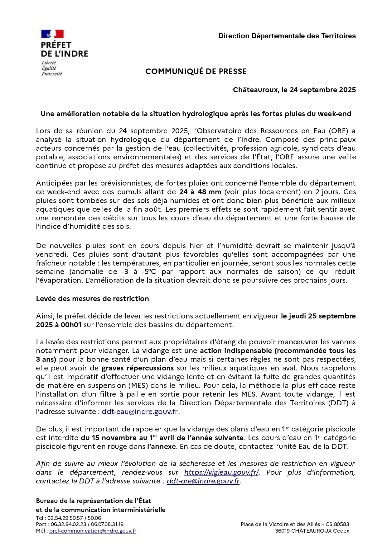 Info de la Préfecture (mercredi 24 septembre à 16h55)