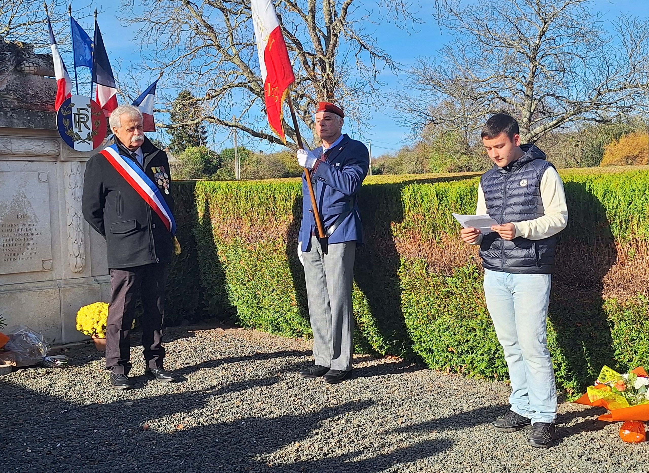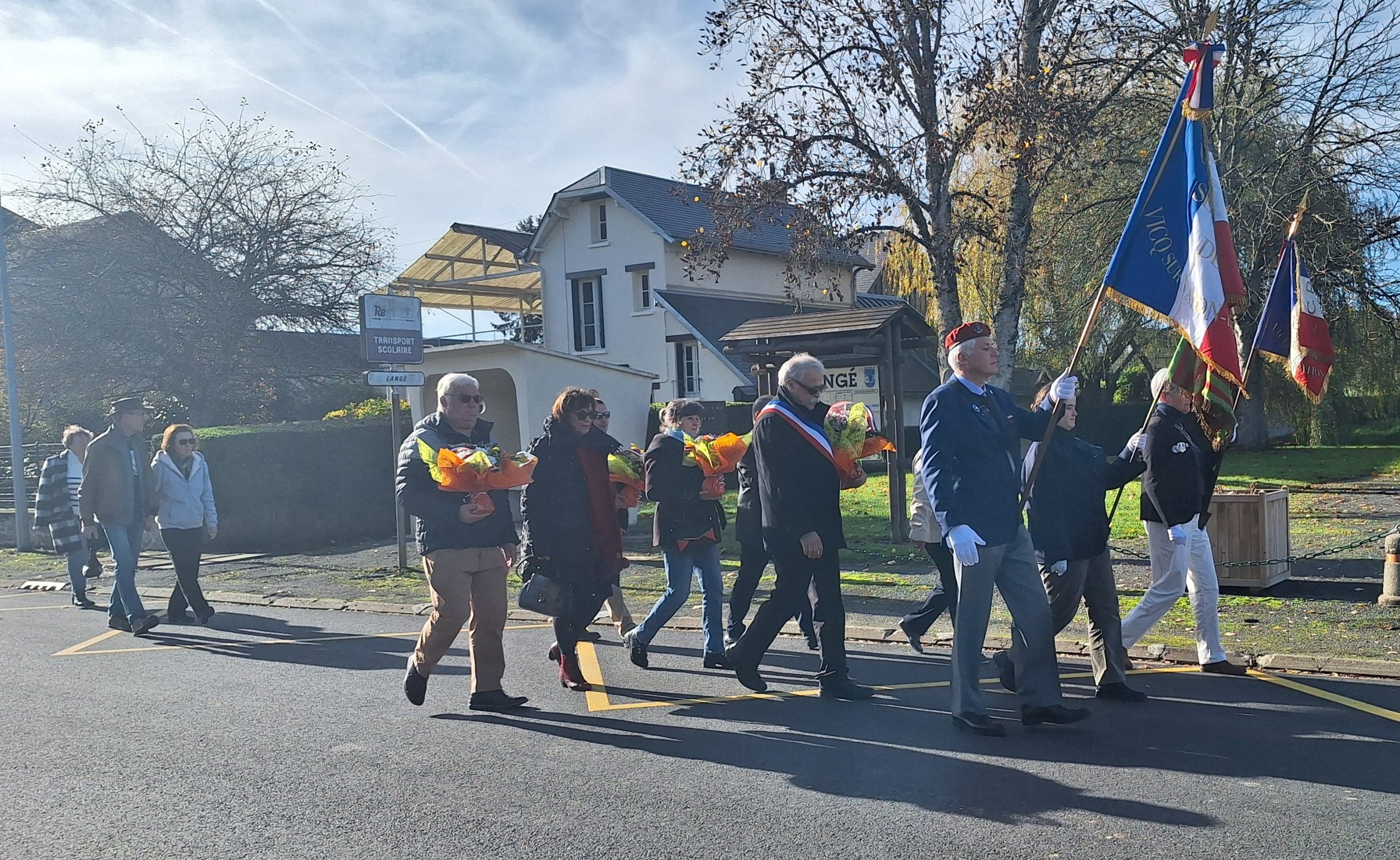 Entre 35 et 40 personnes (habitants de LANGÉ et délégation de Vicq-sur-Nahon) ont défilé derrière les porte-drapeaux, pour assister à la cérémonie au monument, avant d’aller au cimetière rendre hommage aux soldats inconnus enterrés dans notre cimetière.