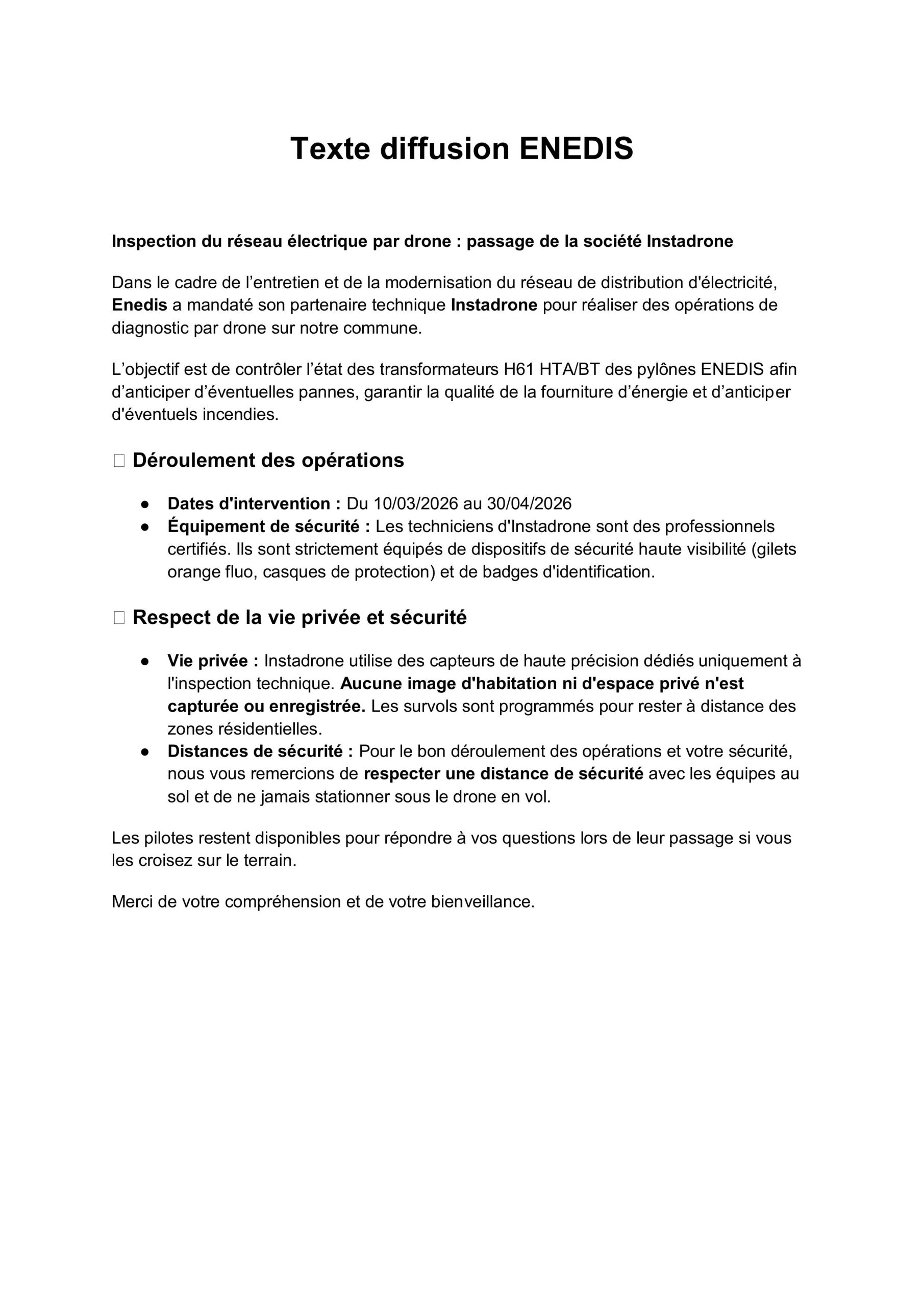 A partir du 10 mars inspection par “drone” du réseau électrique